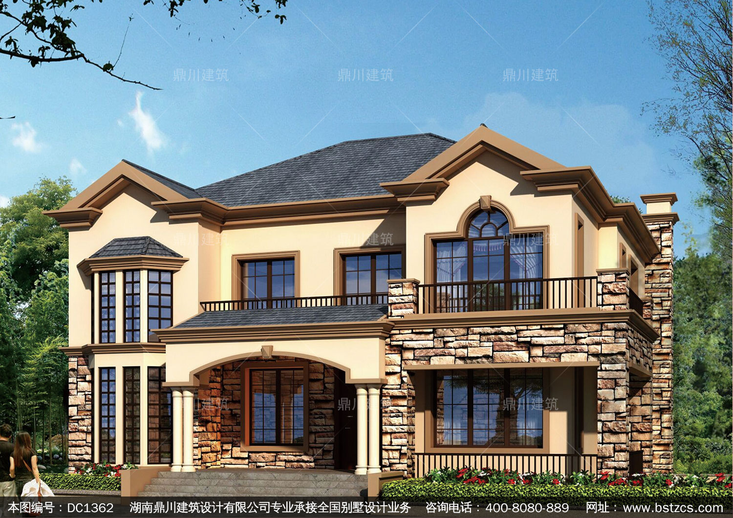 欧式二层带露台别墅图纸及外观效果图_农村自建别墅设计,鼎川建