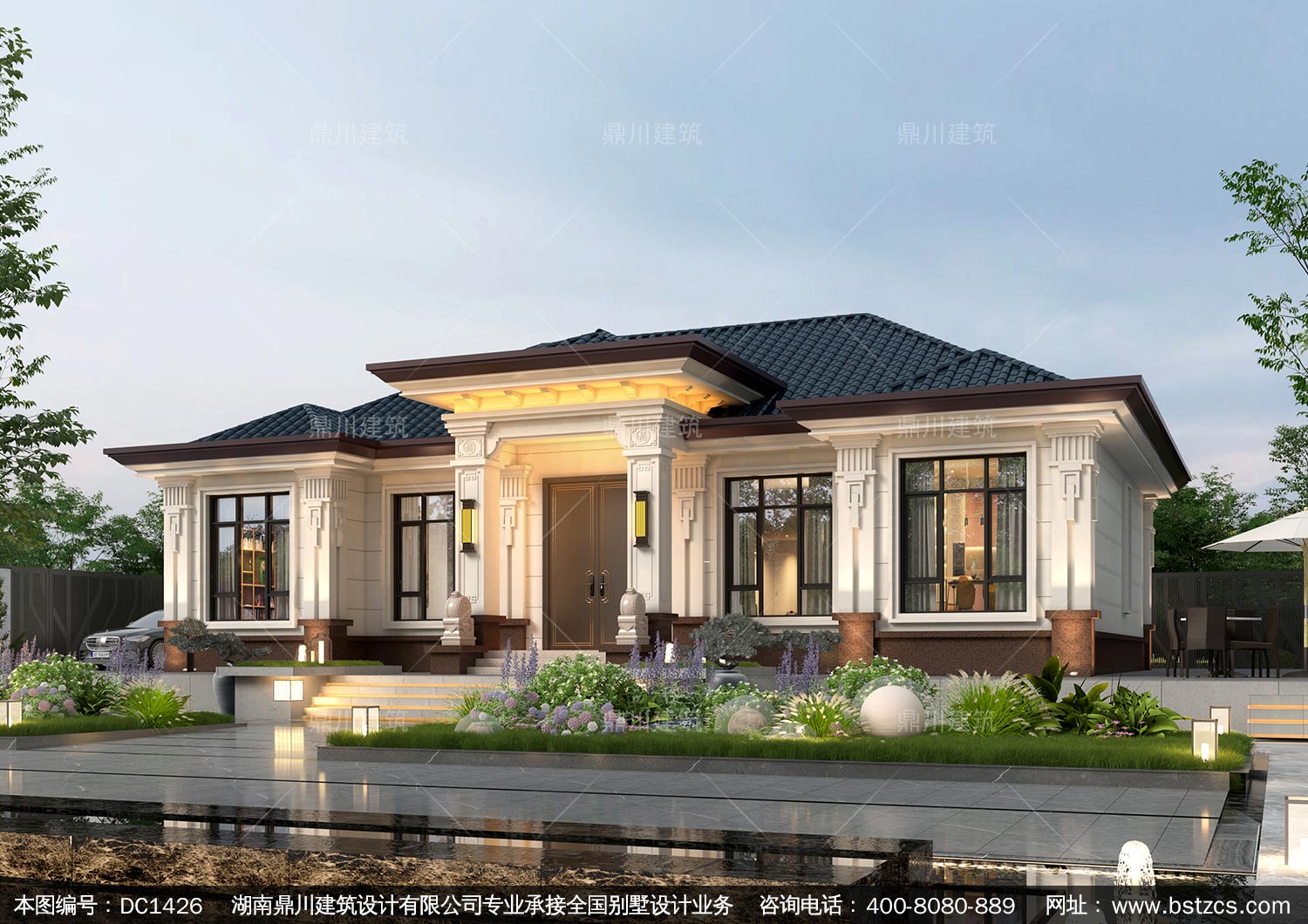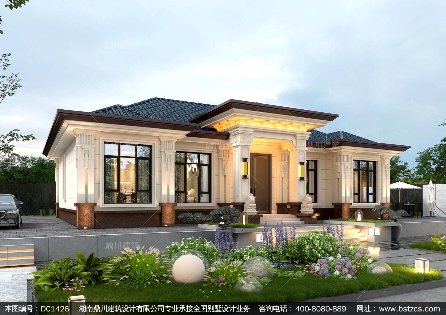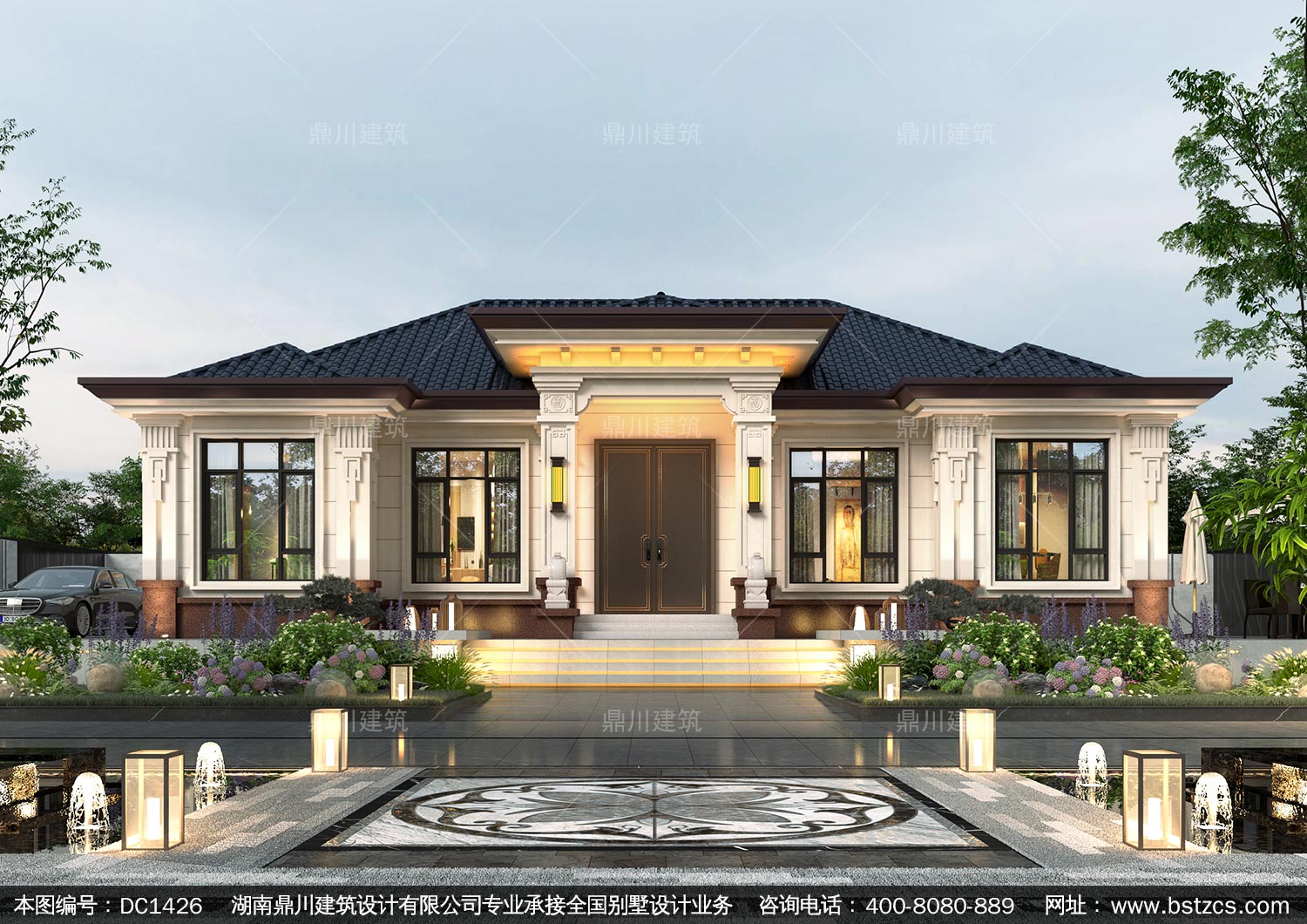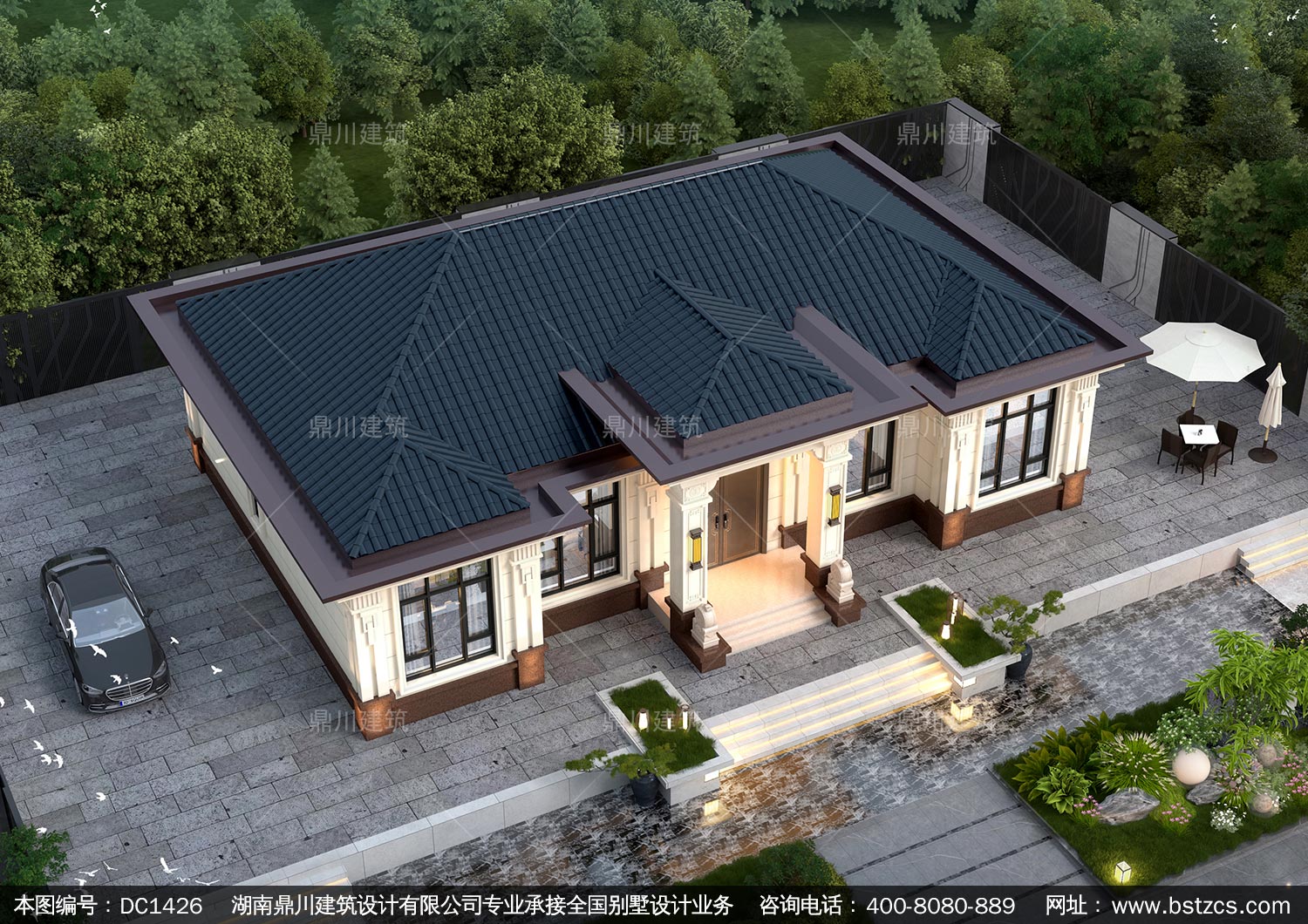 大气新中式一层别墅设计图纸及效果图_农村自建房设计,鼎川建筑