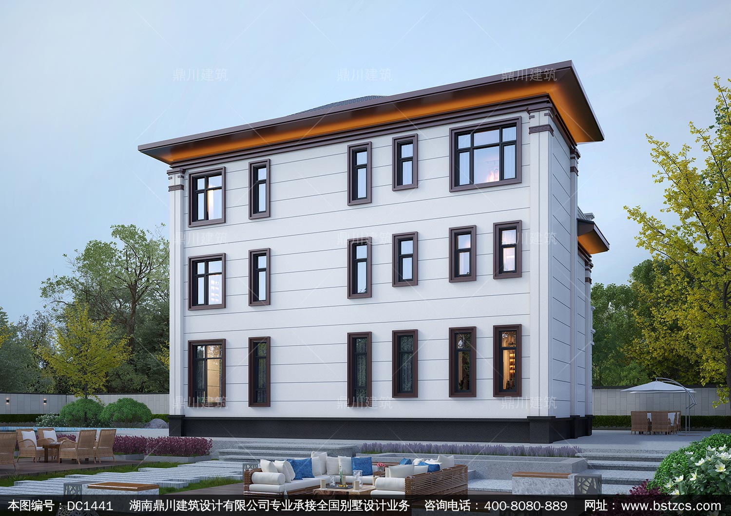 新中式三层复式别墅效果图及施工图纸_农村自建别墅设计,鼎川建
