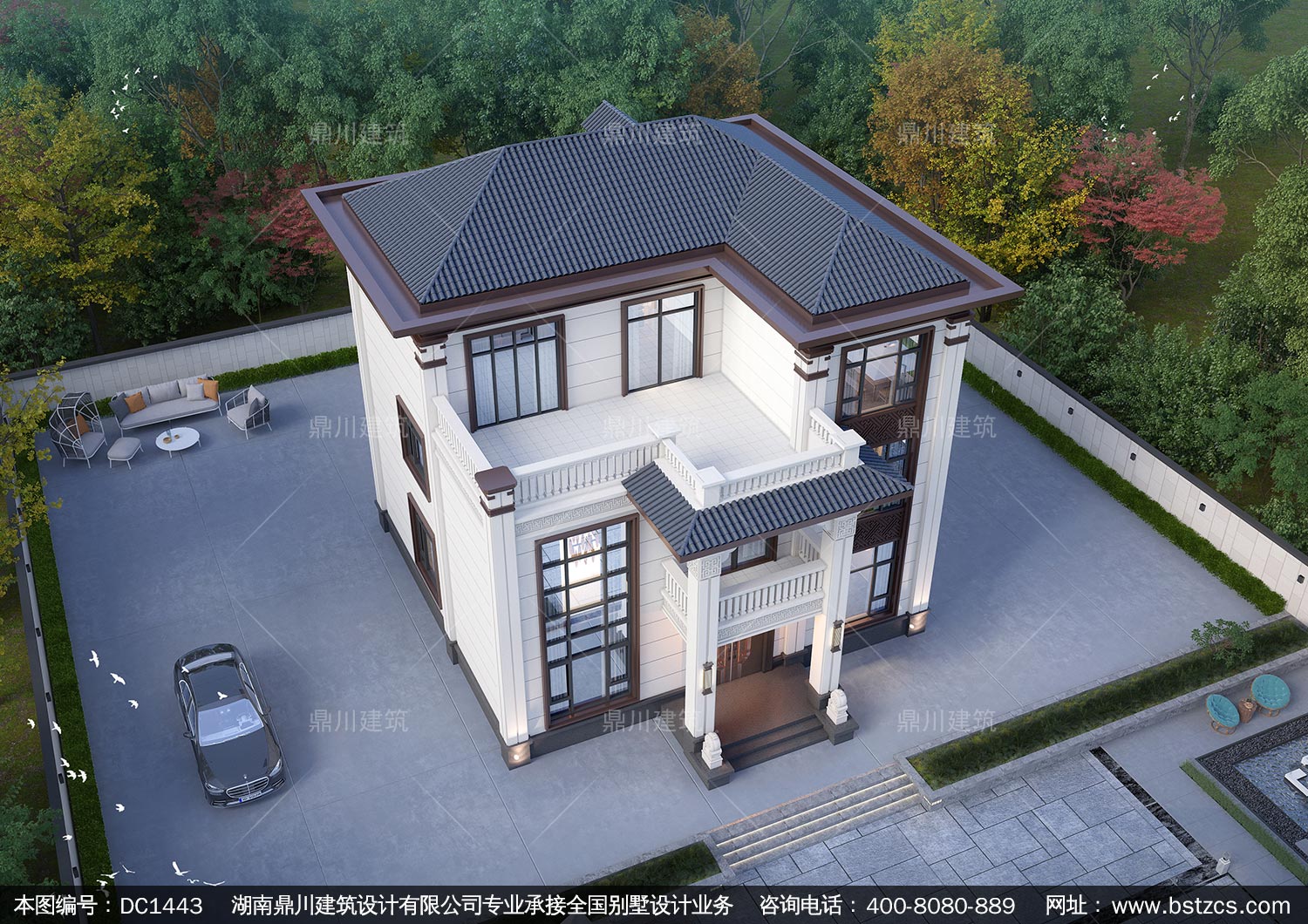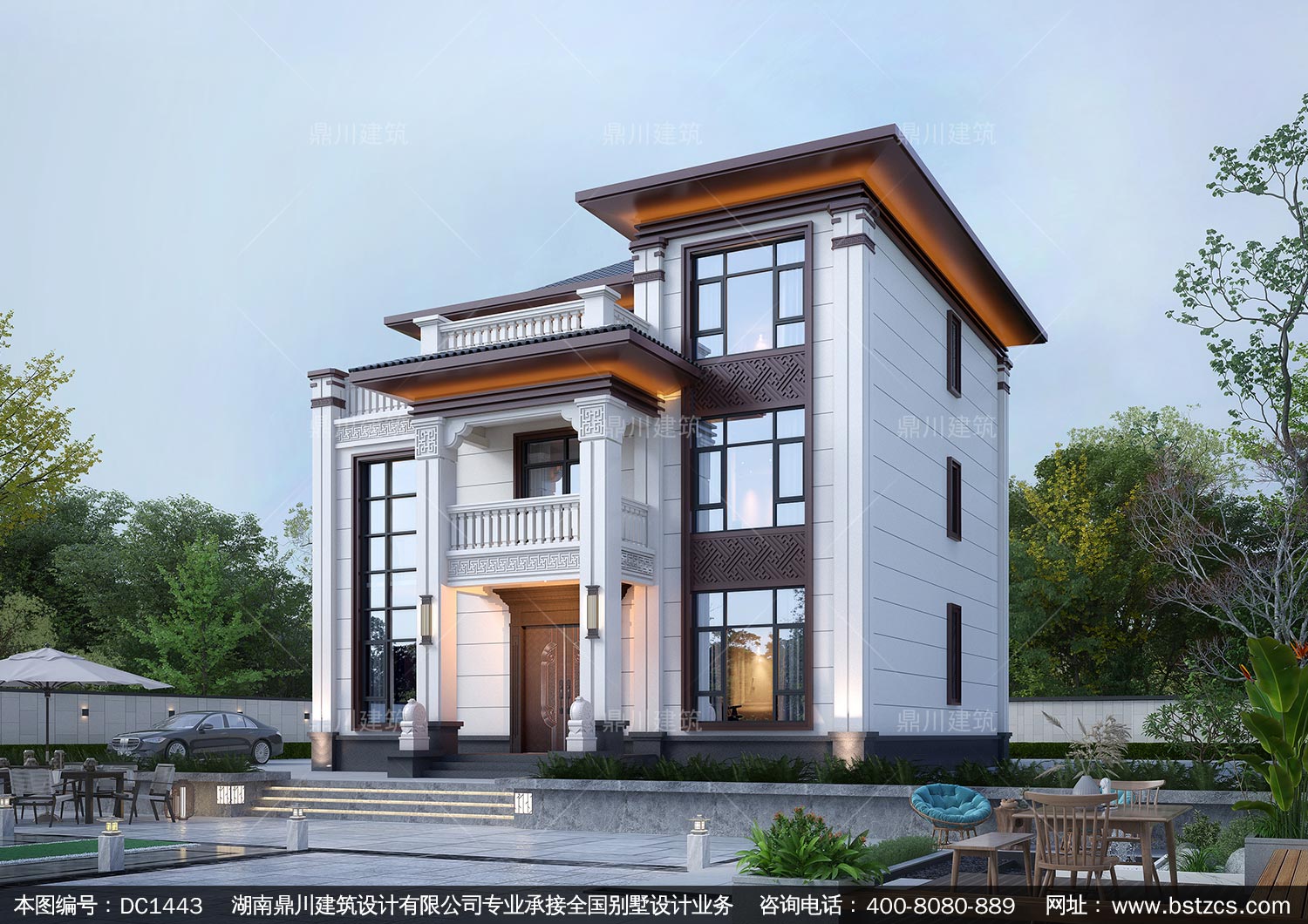 新中式三层别墅设计图纸及效果图_农村自建房设计,鼎川建筑