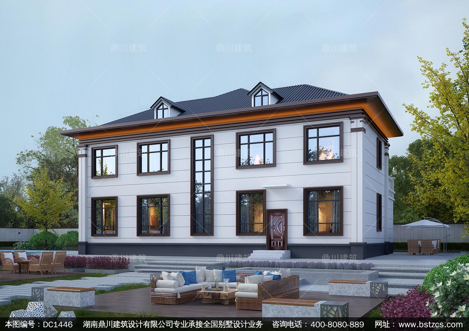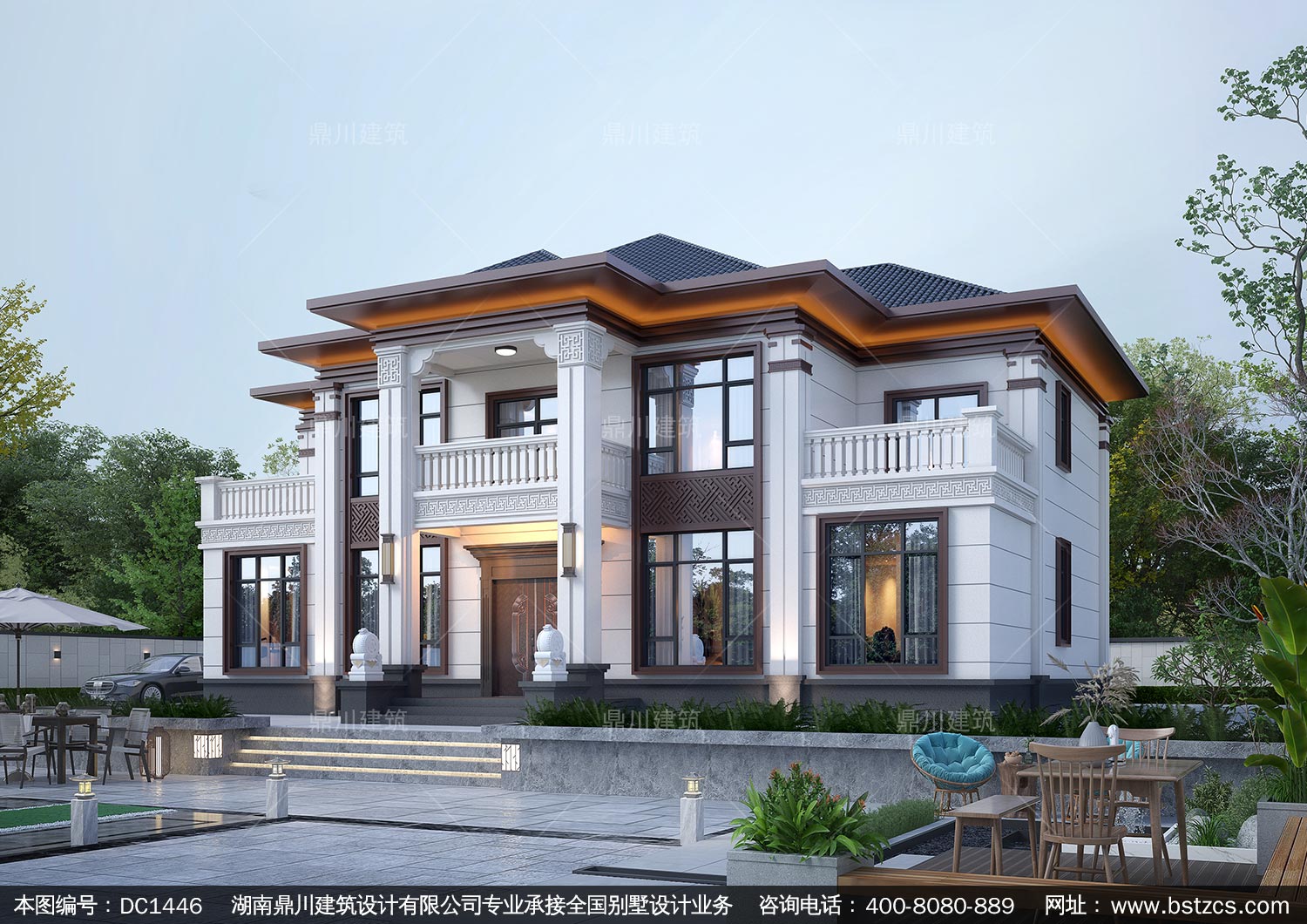 大气新中式二层别墅施工图纸及效果图_农村自建别墅设计,鼎川建