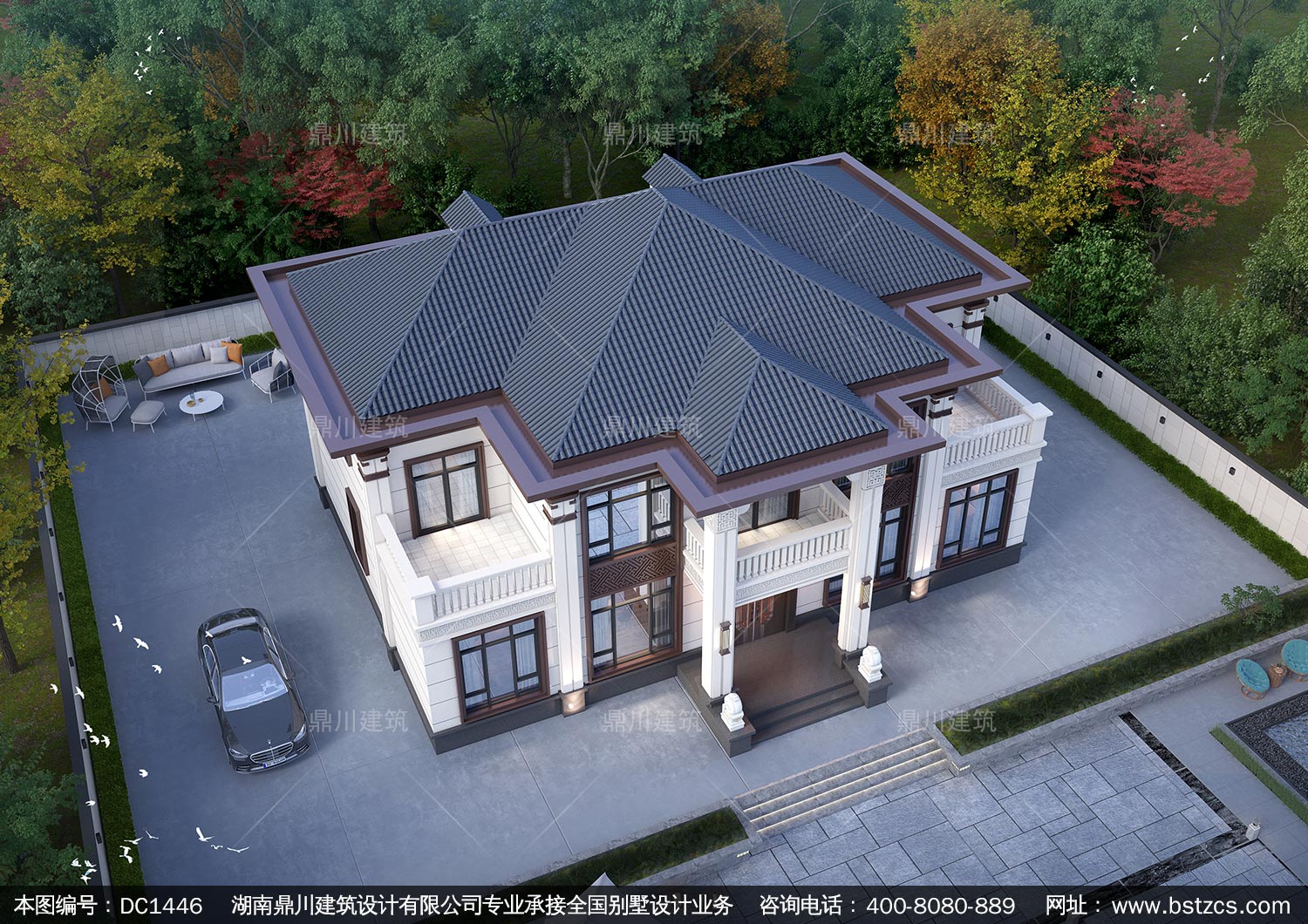 大气新中式二层别墅设计图纸及效果图_农村自建房设计,鼎川建筑
