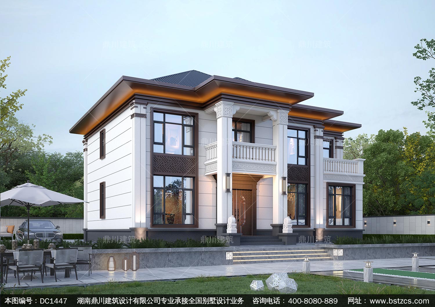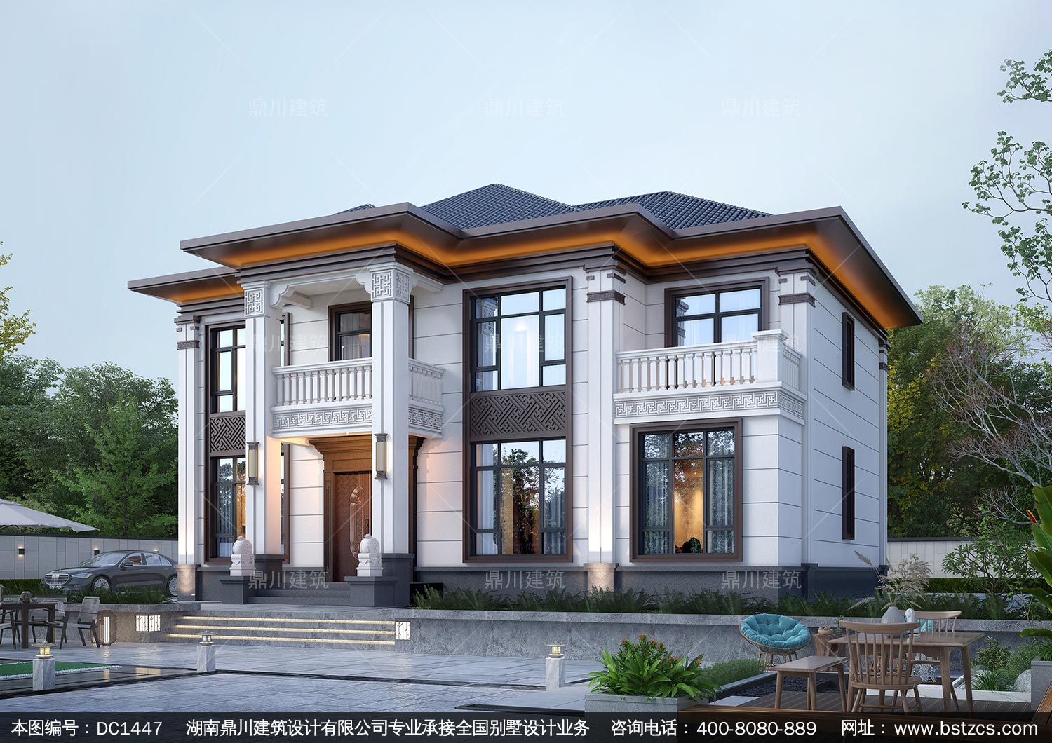 大气新中式二层别墅施工图纸及效果图_农村自建别墅设计,鼎川建