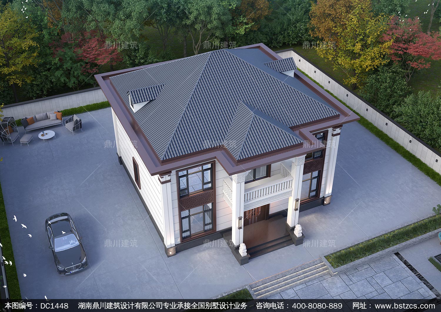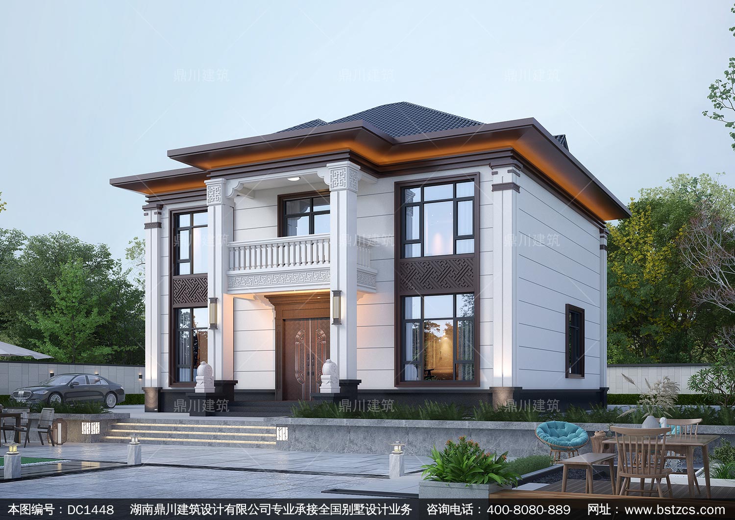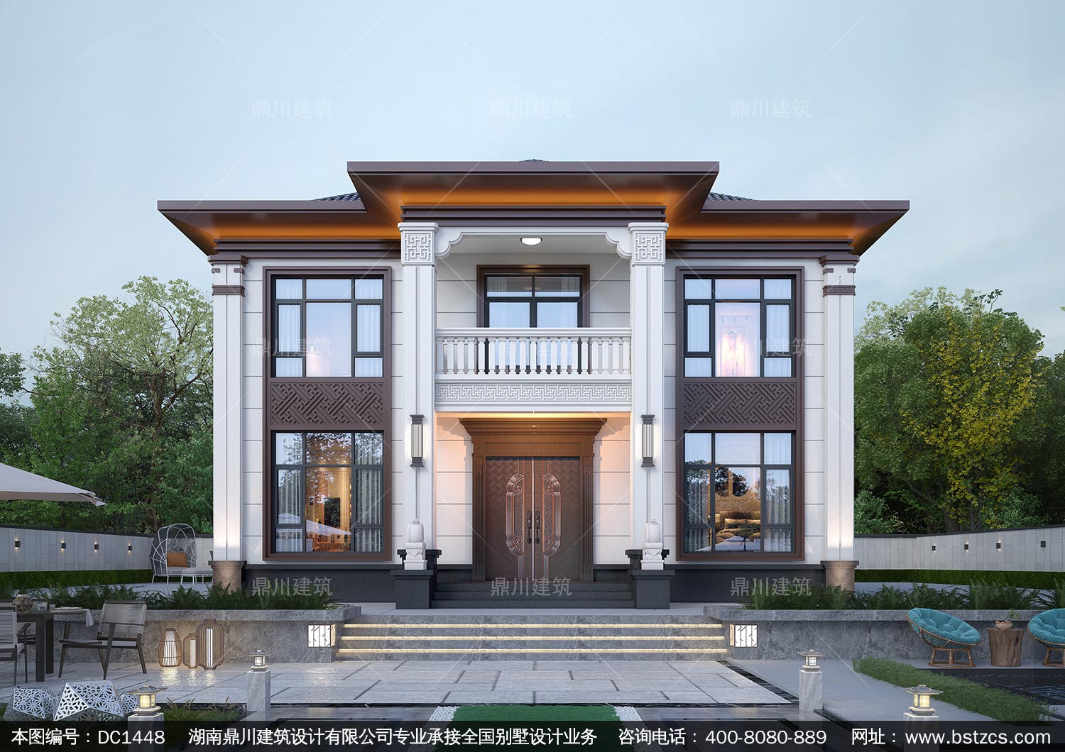 大气新中式二层别墅施工图纸及效果图_农村自建别墅设计,鼎川建