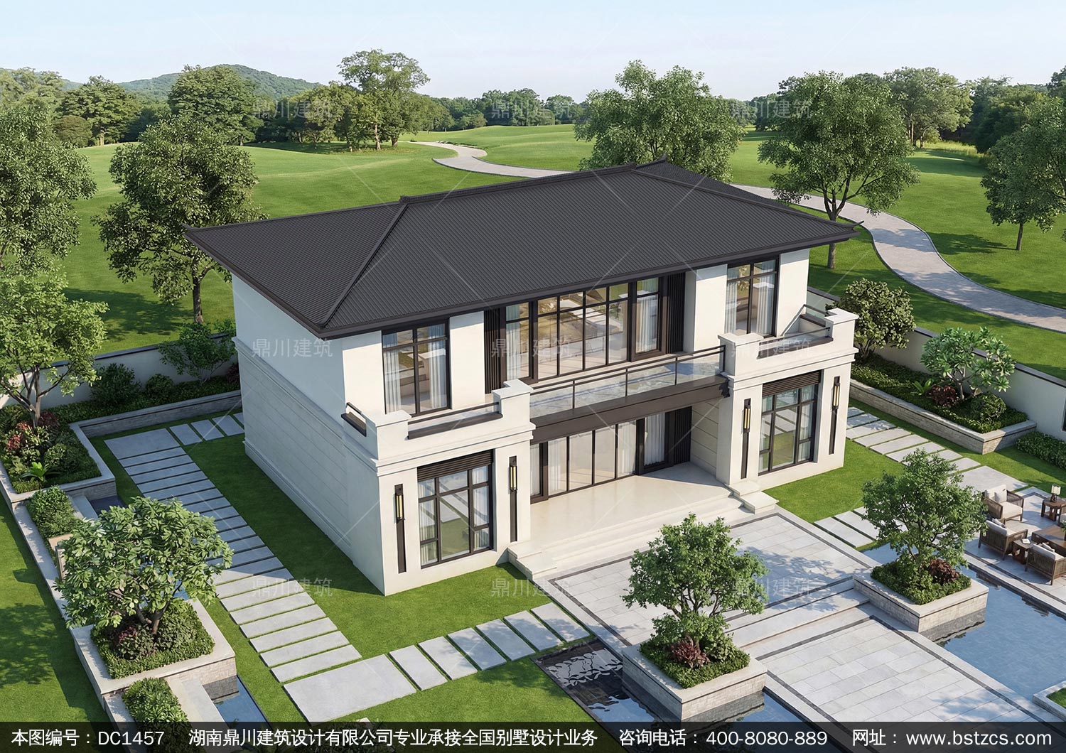 大气新中式二层别墅施工图纸及效果图_农村自建别墅设计,鼎川建