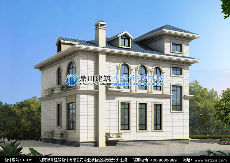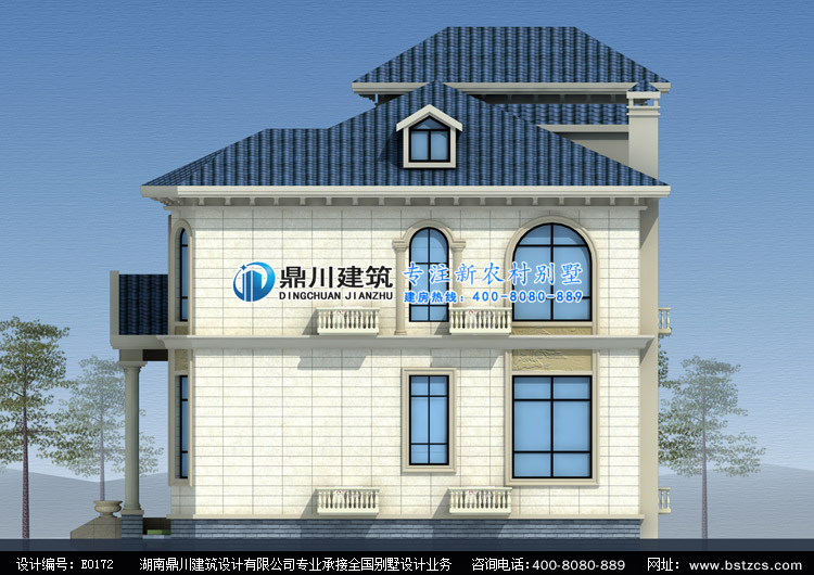 E0172漂亮的二层小别墅设计外观效果图,鼎川建筑别墅私人定制设计