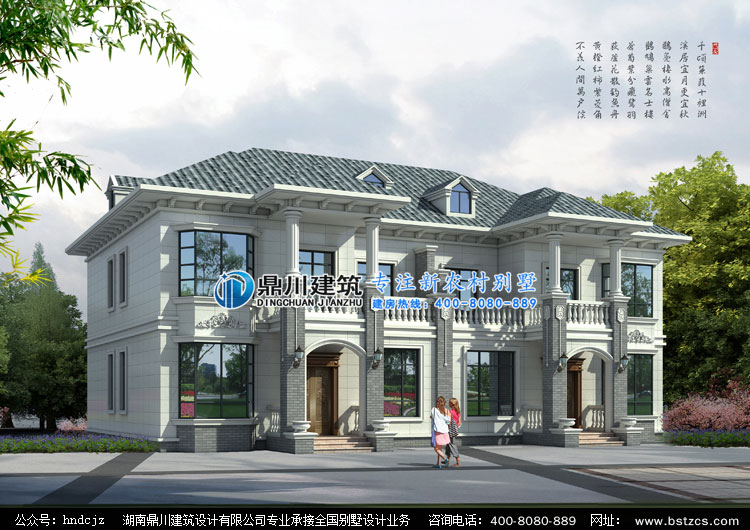 M0218漂亮的二层双拼别墅设计图纸外观效果图,鼎川建筑双拼别墅私人定制设计