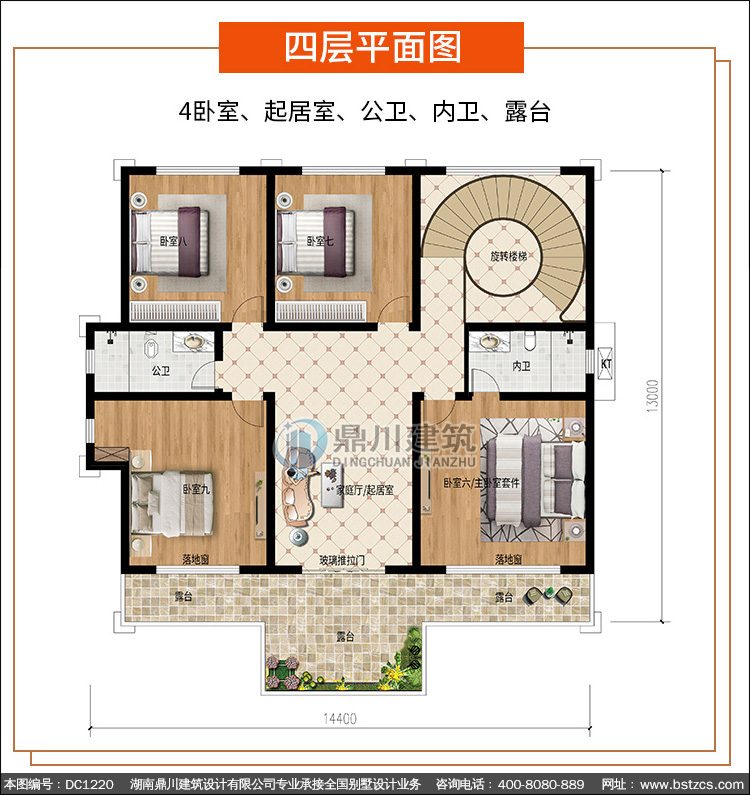 | 三 层: | 4卧室、起居室、公卫、内卫、露台 | |||