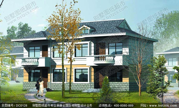 农村二层半双拼自建房设计图效果图_别墅设计图纸,农村房屋设计