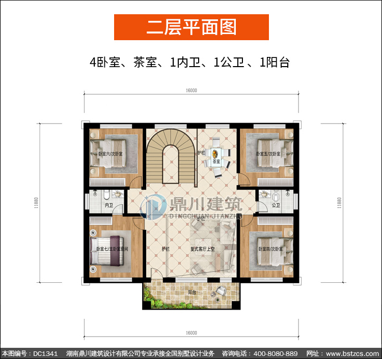 | 二 层: | 4卧室、茶室、1内卫、1公卫、1阳台 | |||