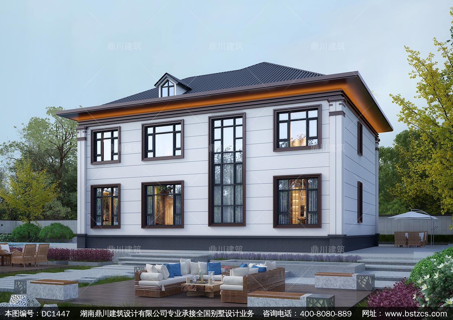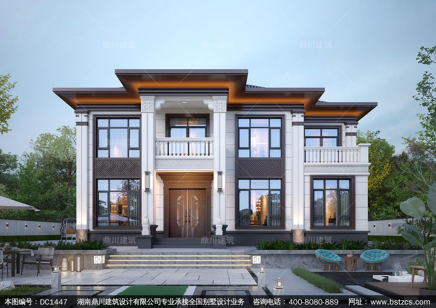 大气新中式二层别墅施工图纸及效果图_农村自建别墅设计,鼎川建