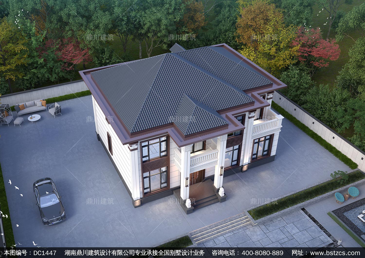 大气新中式二层别墅设计图纸及效果图_农村自建房设计,鼎川建筑