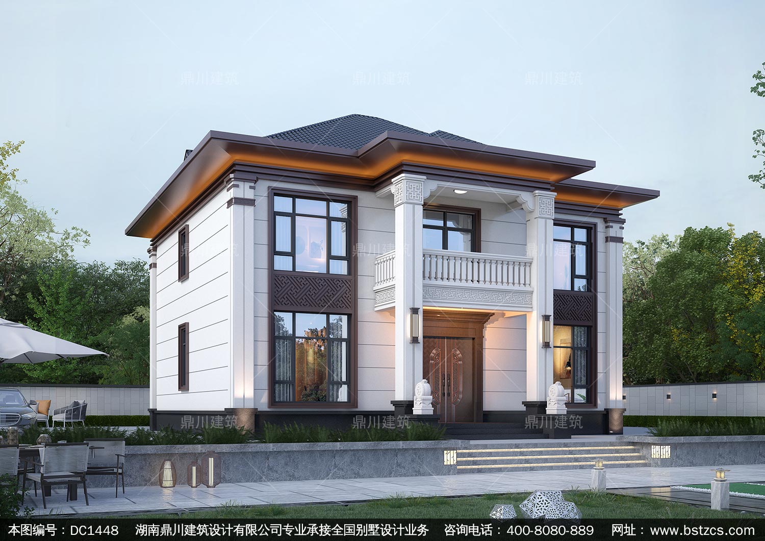 大气新中式二层别墅施工图纸及效果图_农村自建别墅设计,鼎川建