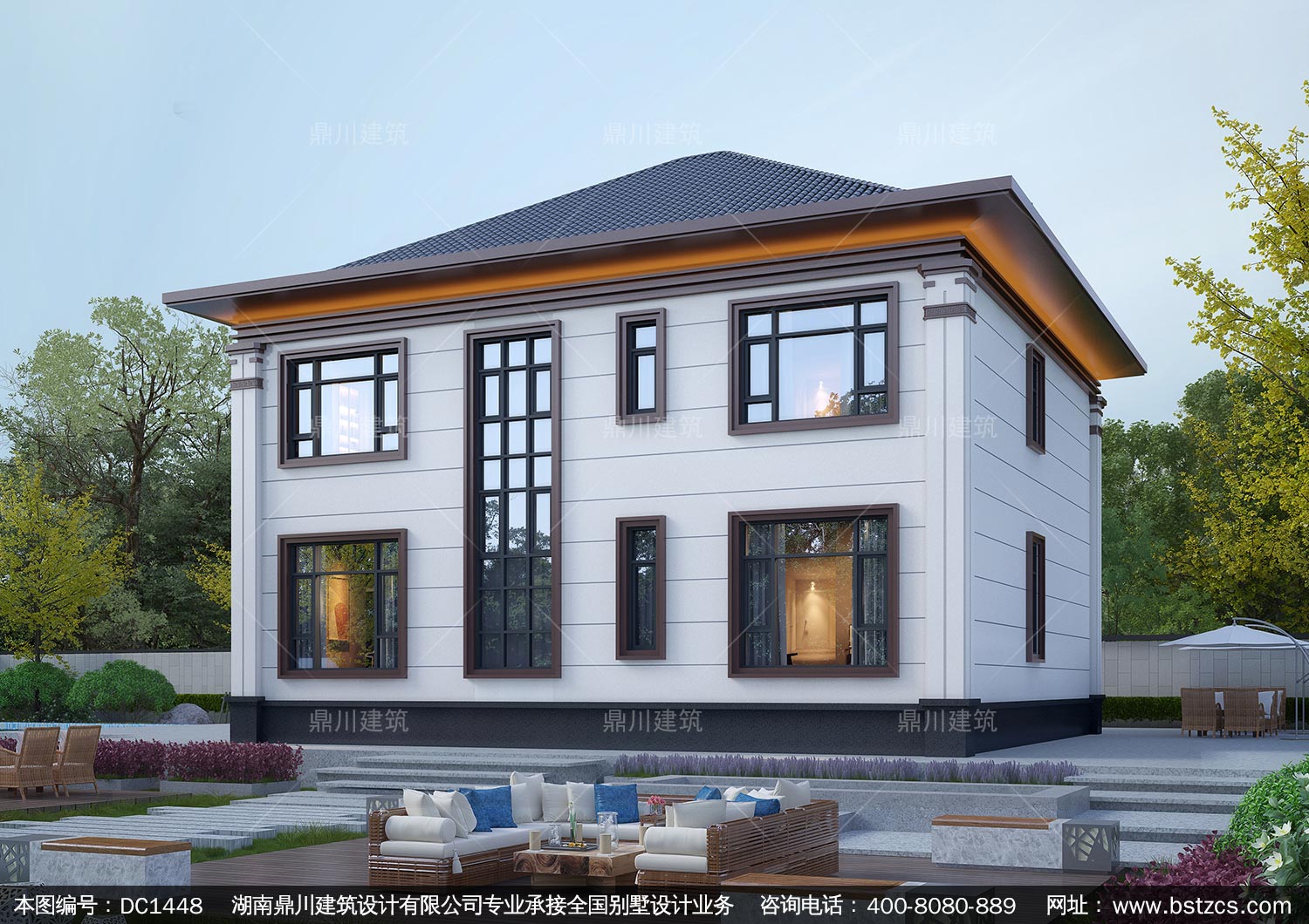 新中式二层别墅施工图纸及效果图_农村自建别墅设计,鼎川建筑