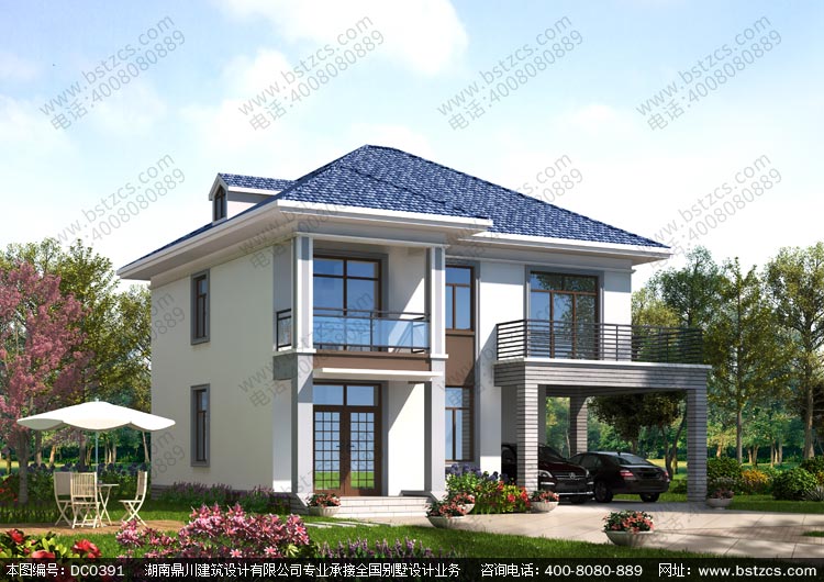 新农村现代二层带车库别墅图纸及效果图_农村两层自建房设计图纸,鼎川建筑